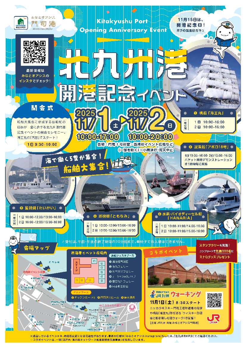北九州港の開港記念日(11月15日)を祝う「北九州港開港記念イベント」を開催しました。 海ネットイベントプランコンテスト受賞企画の実施結果も併せてご報告します。